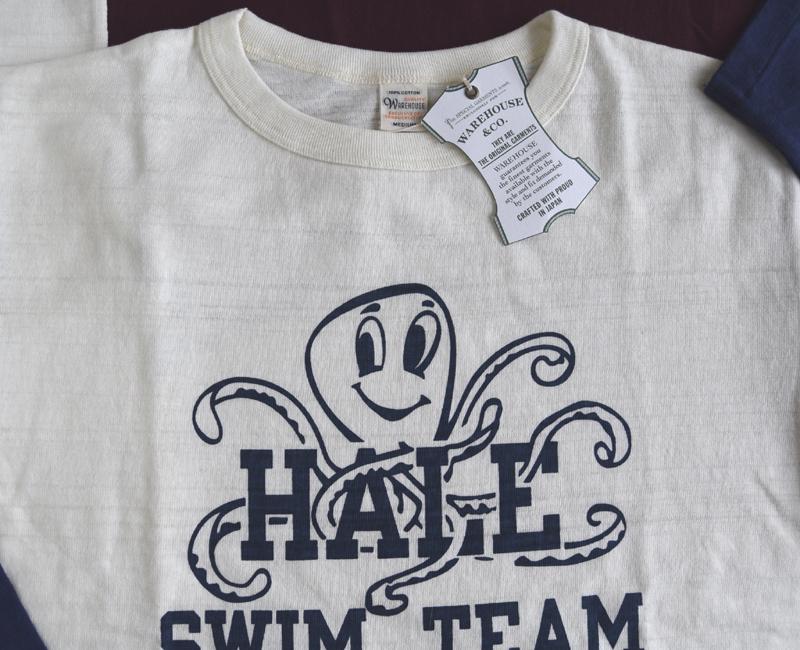 WH-4800-SWIMTEAM :WAREHOUSEウエアハウス 4800 SWIM TEAM 7分袖ベースボールT