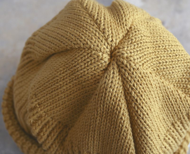 ☆コットン100% の双糸を使った折り返りの付いたワッチキャップ。天井は編み減らし