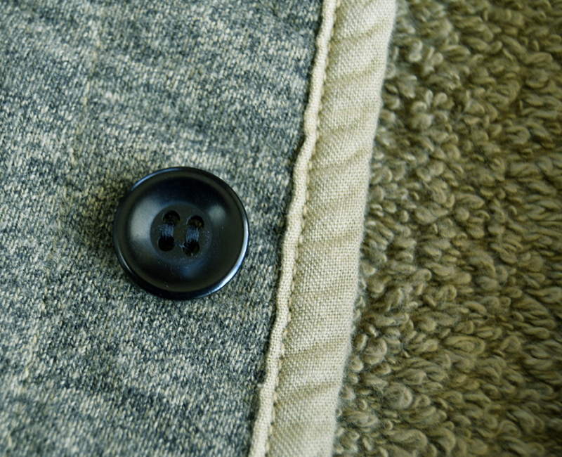 杢生地ベースを選定し反応染めを施す事で表情豊かで雰囲気あるスウェットカーディガンに仕上がっております。