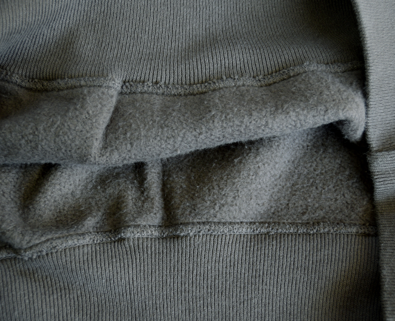 洗濯と乾燥を繰り返すことで変化が生まれた裏起毛、そして褪色でしか表現できないような絶妙なフェードカラーは、「新品の状態で古着の風合い」という「セコハン」そのものです