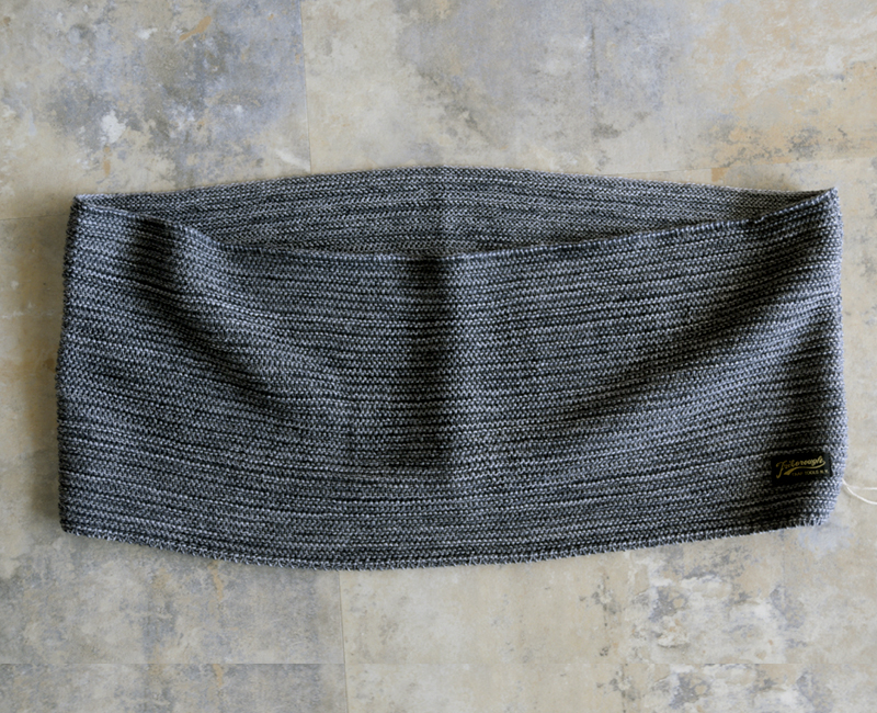 スヌードタイプのネックウェアをインディゴテイストで紡いだ糸を用いて製作しました。