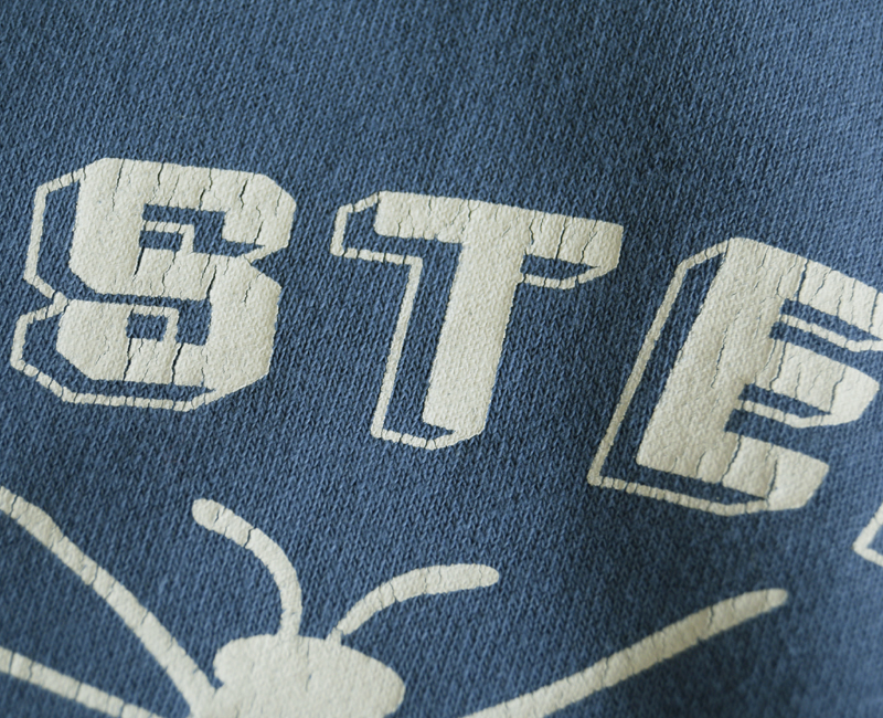 ややゆとりのある身幅の設定により、着用時の独特のドレープ感もお楽しみいただけます。プリントをしたモデルでは「歪み」「染み込み」「掠れ」といった要素も徹底再現しています。