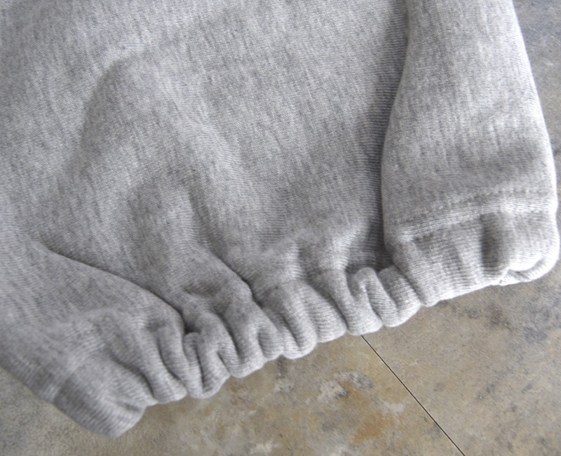 通常のスウェットの倍近い打ち込み数で作られている為しっかりとしたヘビーウエイト。