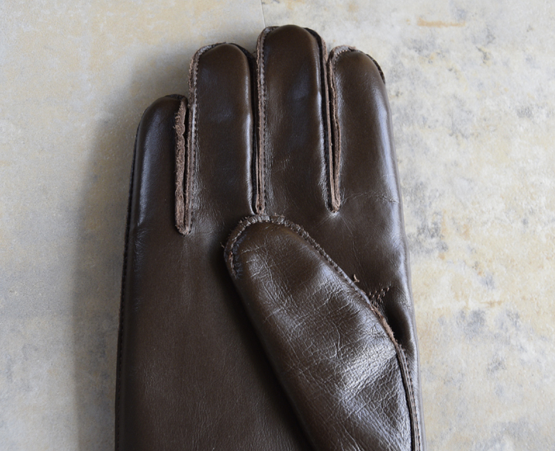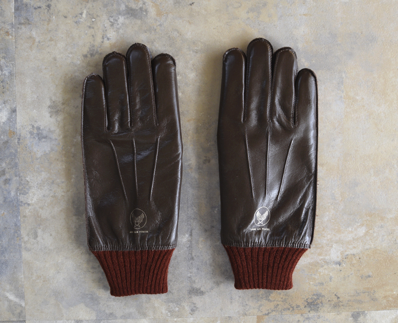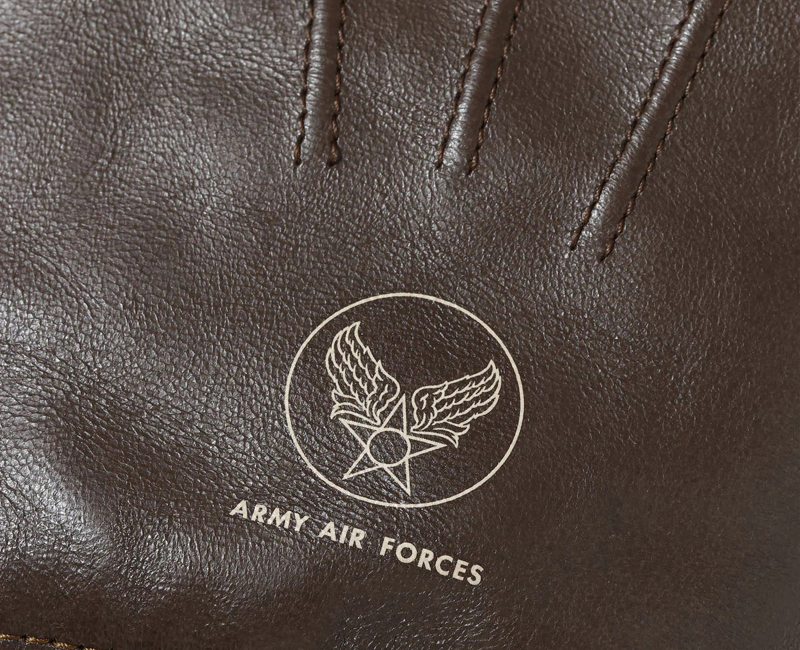米陸軍航空隊のタイプA-10グローブはパイロットの冬季用グローブとして1938年から採用された。メインマテリアルとなる革はゴートスキンかポニーハイドを使用するよう規定され、ライニングには肌触りの良いウール100%のニットが使用されている。手首にはストレスの掛からないチューブ編みのウールニットが装着され、このニットには着用時に伸びを防ぐ補強用の当て革が縫い付けられている。手の甲に施された3本のステッチは革の伸びを抑え、フィット感を維持するためのディテール。5本の指周りを往復する手の平側と甲側の縫製は高度な縫製技術が要求され、繊細なステッチが時間を掛けて丁寧に縫い上げられたことを物語る。