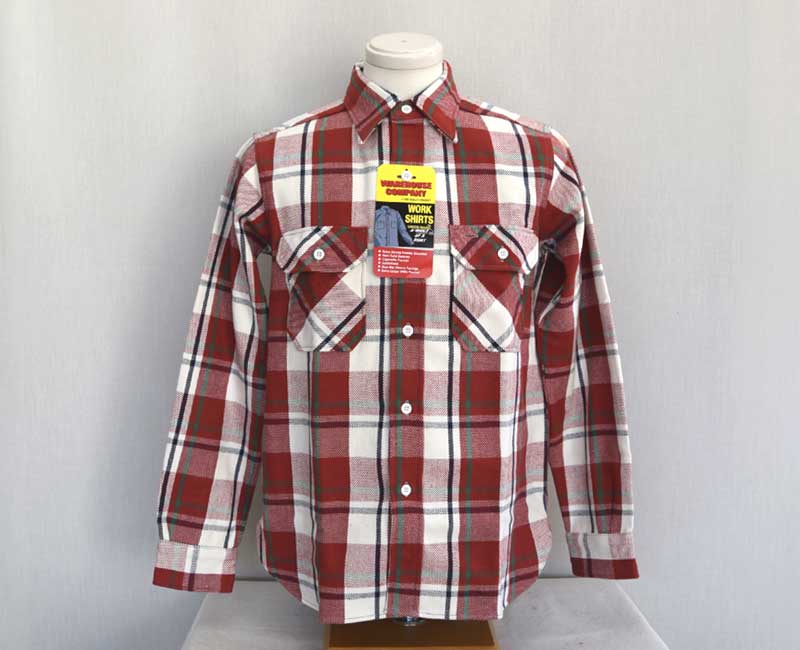 WH3104 :WAREHOUSE ウエアハウス FLANNEL SHIRTS C柄 【2025 MODEL】RED ネルシャツ