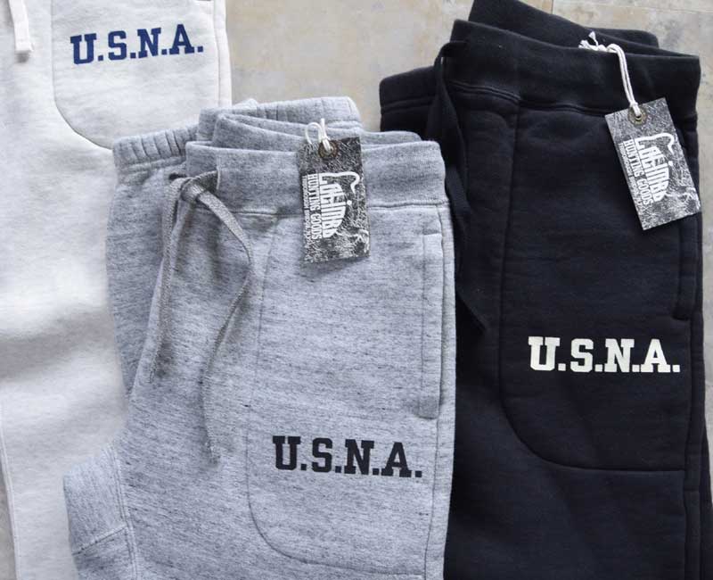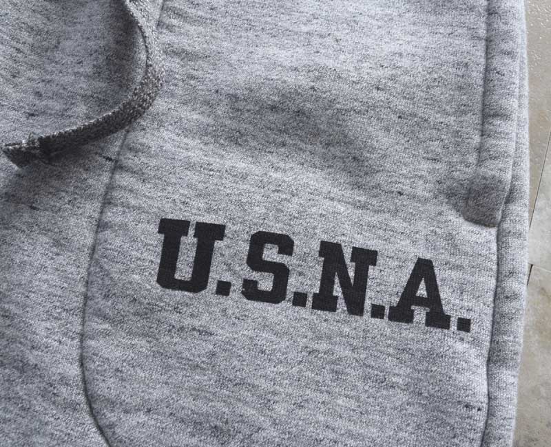 デザインは、かつて海軍士官学校(USNA)のPXで扱われていたスウェットパンツをイメージし、当時の雰囲気をそのまま落とし込んだ「USNA」プリントを再現。