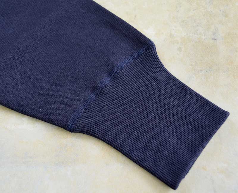 1950年代にはスポーツウェアとしてのスウエットシャツがラグランスリーブになり、ガゼットの補強がなくなったシンプルモデルが誕生しました。ラグランスリーブのステッチが効いたオーセンティックなスウエットです。