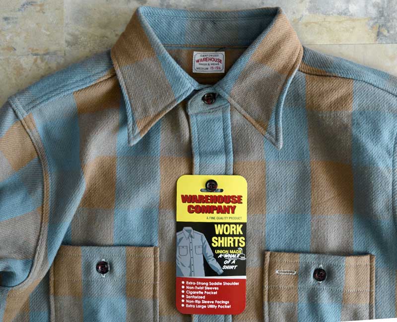 WH3104 :WAREHOUSE ウエアハウス FLANNEL SHIRTS A柄 / SAX ネルシャツ