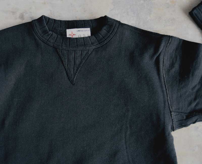 丸胴ボディに両Vガゼットを備えた、クラシックな佇まいの針抜きスウェット。