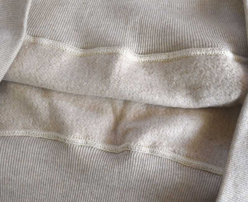 セットインスリーブの二本針タイプのフード付きモデルです。不変的な定番デザインながら、フード裏、ポケット口には特徴的なフライスリブを使用しているため、フードはさらにフィット感を高め、フロントポケットはアクセントだけでなく、補強の役割も果たしています。