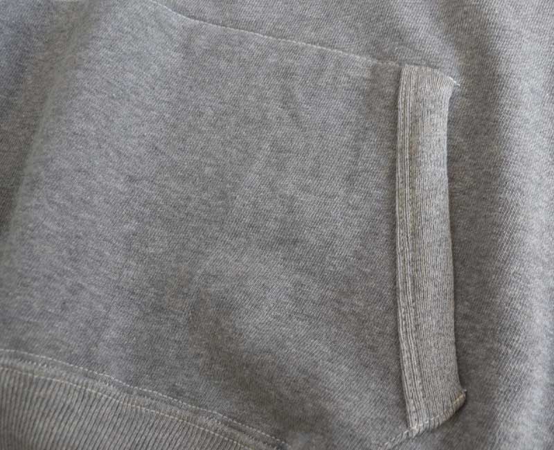 セットインスリーブの二本針タイプのフード付きモデルです。不変的な定番デザインながら、フード裏、ポケット口には特徴的なフライスリブを使用しているため、フードはさらにフィット感を高め、フロントポケットはアクセントだけでなく、補強の役割も果たしています。