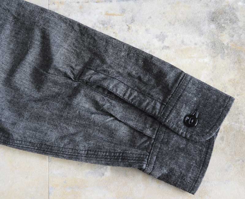 シュガーケーンの定番アイテムとして長年継続してリリースしている「Lot No. SC27850」をブランド初となるブラックシャンブレーで製作。硫化染料をロープ染色によって染め上げた経糸を使用した生地に、ブラックで統一したトリプルステッチや尿素ボタンを組み合わせたシックな佇まいが魅力。同型でロングスリーブモデルも展開。