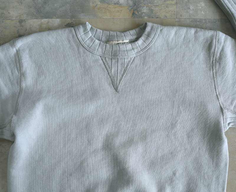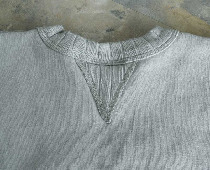丸胴ボディに両Vガゼットを備えた、クラシックな佇まいの針抜きスウェット。