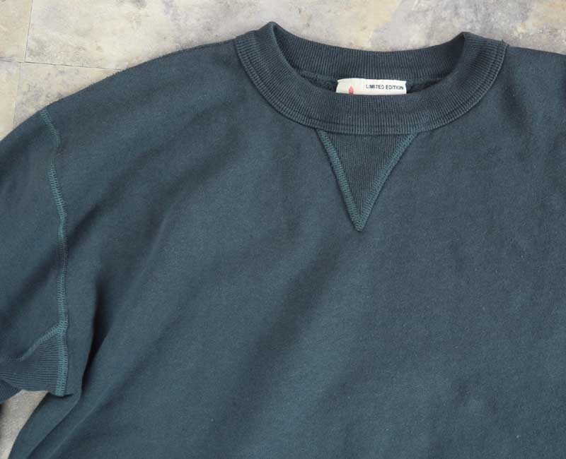 古い吊り編み機でゆっくりと編み立てた、丸胴仕様のスウェットボディ。