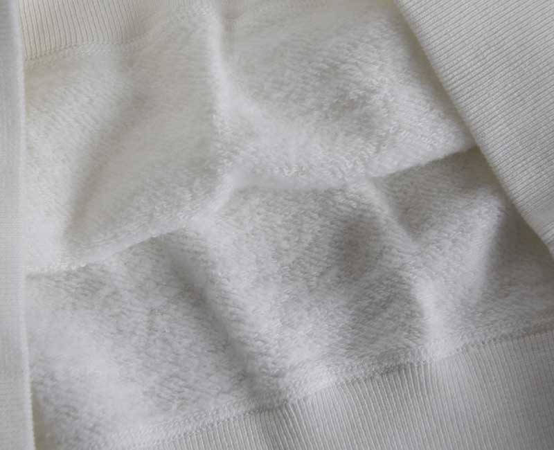 古い吊り編み機でゆっくりと編み立てた、丸胴仕様のスウェットボディ。