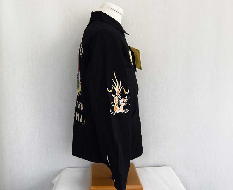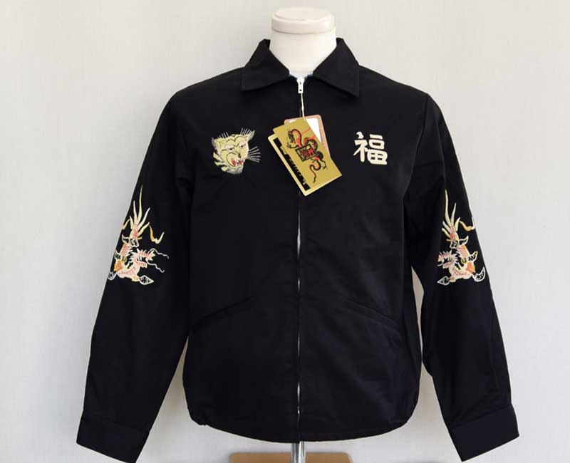 1960年代中期、ベトナムの都市・PLEIKU(プレイク)の米軍基地に駐留していた兵士がアメリカへ持ち帰った一着を再現。刺繍は右胸に虎、左胸に「福」の文字、両袖に龍、背中にベトナムの地図を描いたベトジャンにおける王道のデザイン。ヴィンテージのベトジャンには刺繍が粗い個体も多いが、本作は密度が高く優れたクオリティの刺繍を再現している。袖口にはヴィンテージ同様、古銭を模したボタンを採用。ブラックに加え、現存する個体数が少なくレアなオフホワイト生地のタイプも展開する。