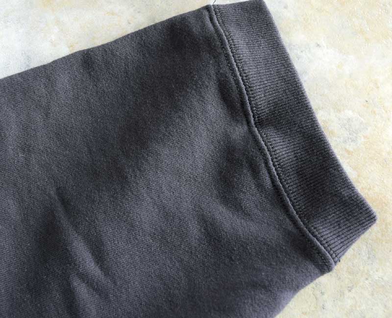 縫製は2本針仕様で仕上げられ、ヴィンテージスウェットのような雰囲気。
