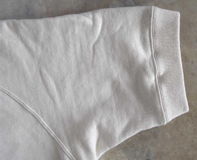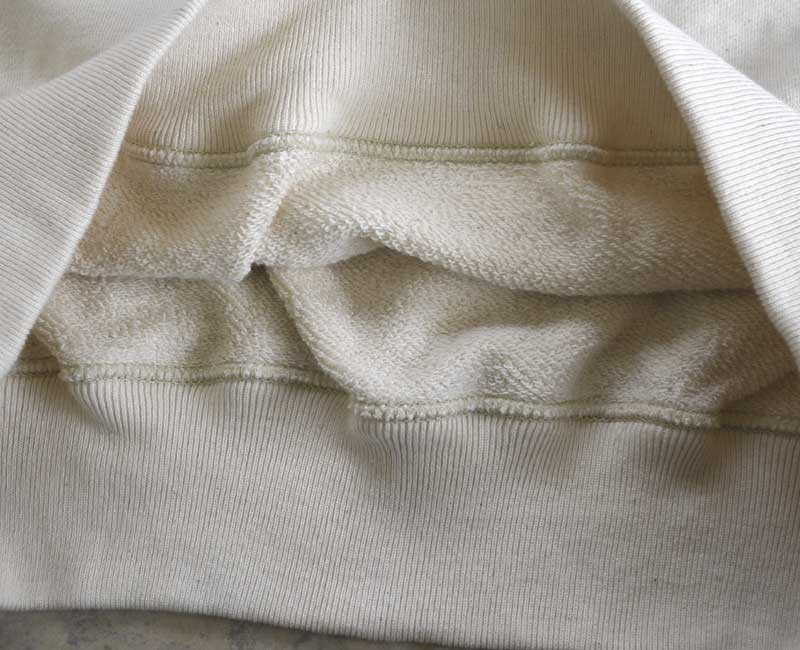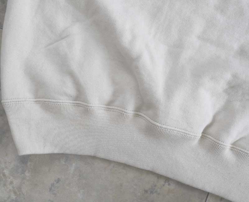 縫製は2本針仕様で仕上げられ、ヴィンテージスウェットのような雰囲気。