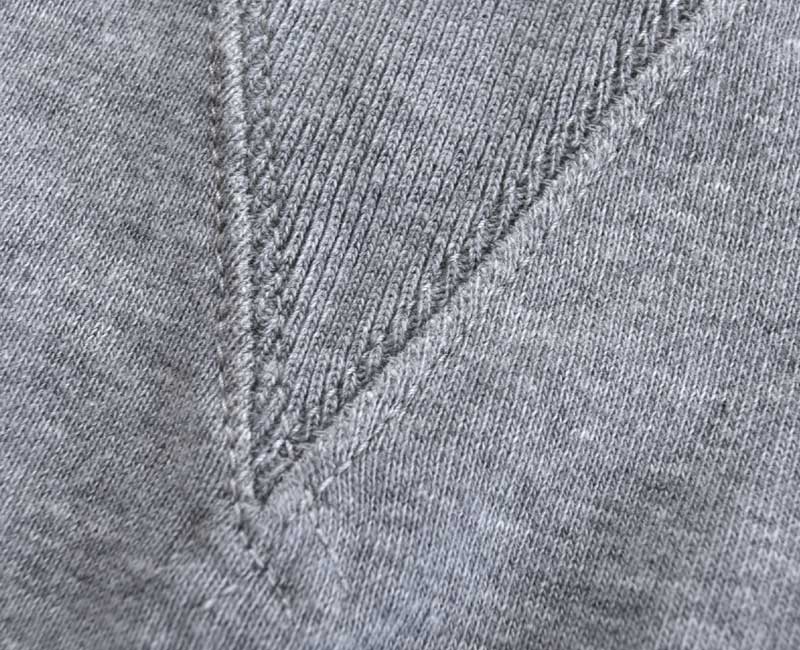 ここはあえて、Vガゼット、丸胴吊り編みにて制作しております。