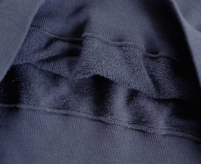 ここはあえて、Vガゼット、丸胴吊り編みにて制作しております。